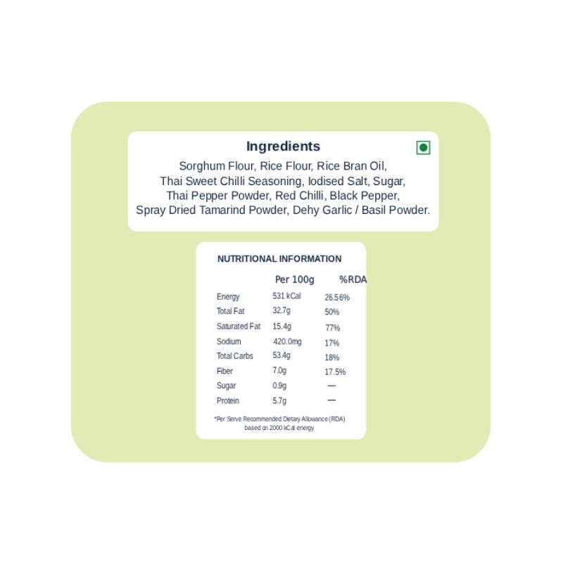 Crunchy jowar bites coated in a perfectly balanced sweet chilli flavour that hits all the right notes. Made with wholesome millet, these bites are light, palm oil free and easy on the stomach. Each crunch delivers bold flavour without feeling heavy or greasy. A smarter snacking option for anytime cravings. Comforting, conscious and seriously addictive.
